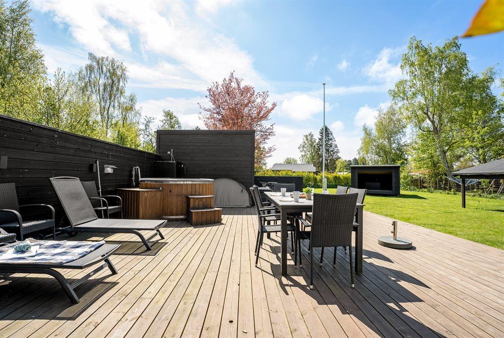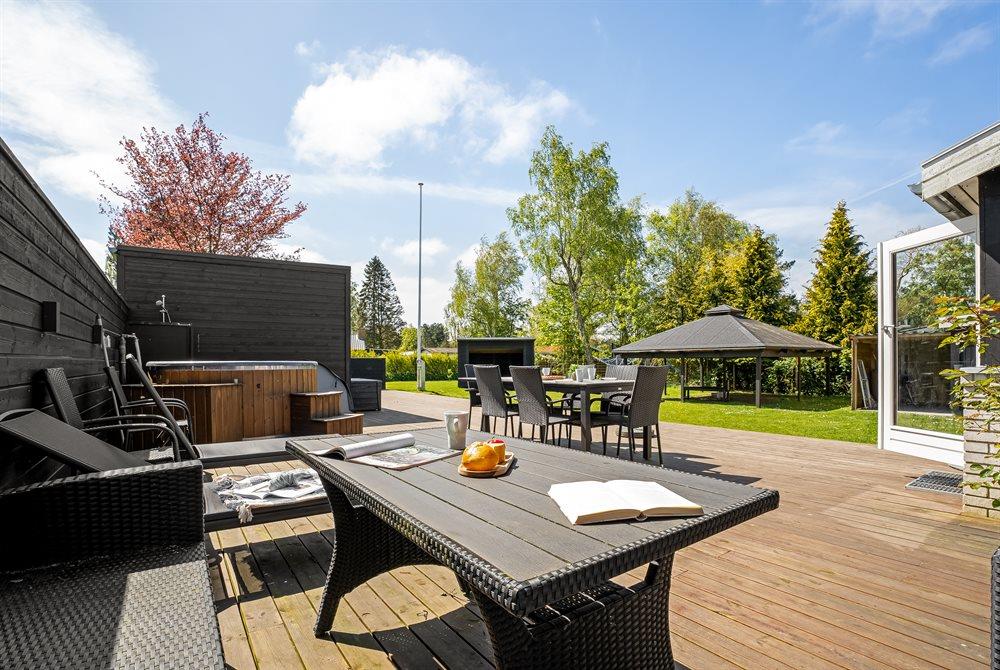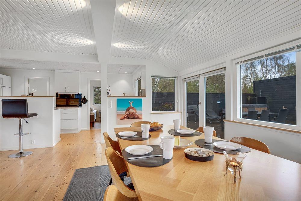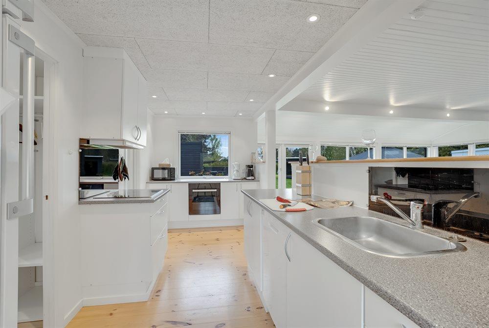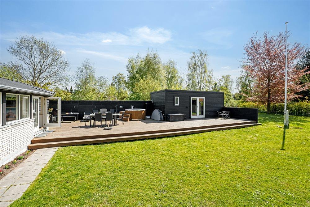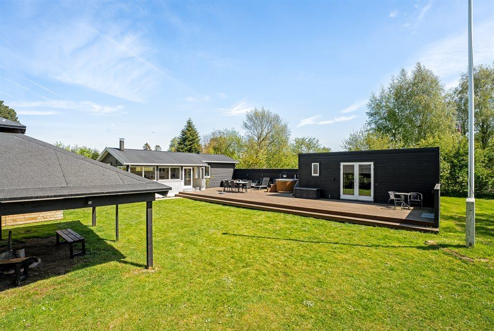 The holiday home is situated on a 1040 m² garden site. The site is fenced in. Situated 600 m from the sea. Nearest shop is 1000 m away. You will find a golf course in a distance of 1500 m. A terrace belong to the holiday home. Furthermore the house has a covered terrace. Situated 1000 m from a playground.Fire place. Shelter. Outdoor sauna. Outdoor shower. Barbecue at your disposal. Plug for charging electric car is available. CEE socket. Parking place by the holiday home.