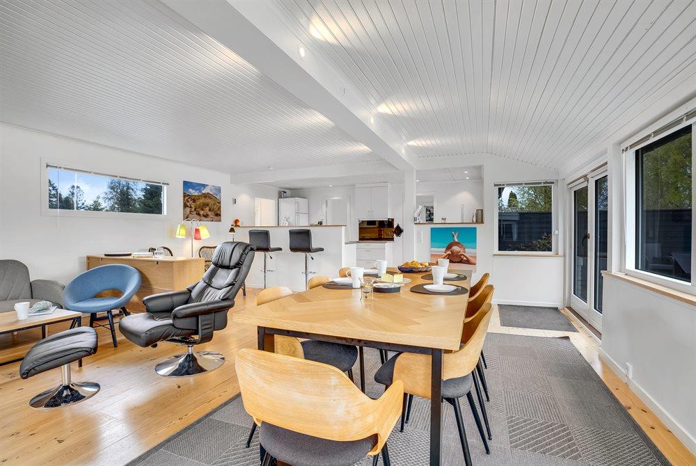 Holiday home suitable for 8 persons . The holiday home is 140 m² and is build in 1969. In 2022 the holiday home was renovated. You can bring along 2 pets. The holiday home is equipped with 1 energy-saving air-to-air heat pump. The holiday home has washing machine. Tumble dryer. Freezer capacity of 25 litres. Further more there is 1 wood-burning stove. For the youngest ones there is 1 high chair.